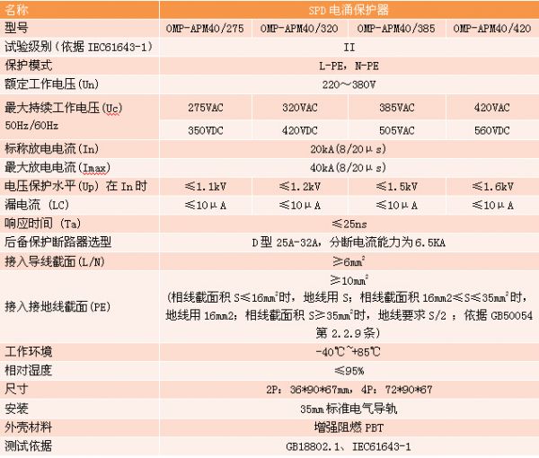 40KA二級電源防雷器(SPD電涌保護(hù)器) OMP-APM40/320/2-II ,OMP-APM40/385/2-II-
