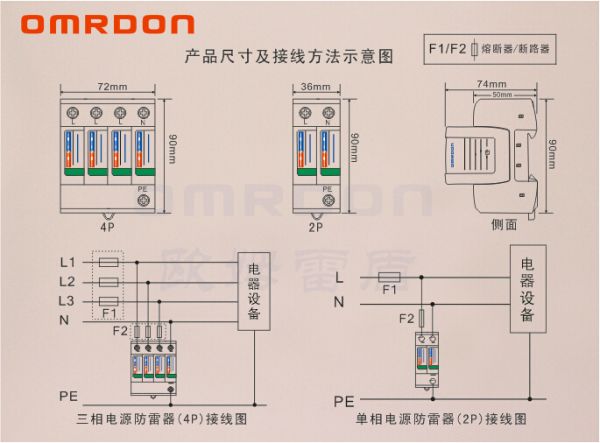 歐姆雷盾(OMRDON)二級電涌保護(hù)器(Surge Protection Device,簡稱SPD)(又稱電源防雷器、電源避雷器、浪涌保護(hù)器、過壓保護(hù)器),適用于交流380V(50Hz/60Hz)及以下的TN-S、TN-C-S、TT、IT等供電系統(tǒng)因雷擊而產(chǎn)生的雷擊電磁脈沖(LEMP)保護(hù),用于雷擊區(qū)域的LPZ1區(qū)與LPZ2區(qū)交界處,其設(shè)計依據(jù)符合GB18802.1,IEC61643-1技術(shù)標(biāo)準(zhǔn)。